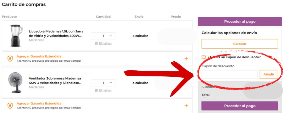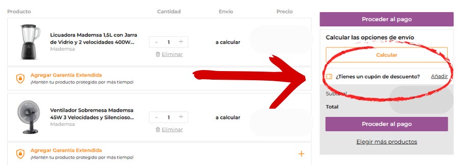 - En la parte derecha verás la pregunta: "¿Tienes un cupón de descuento?"